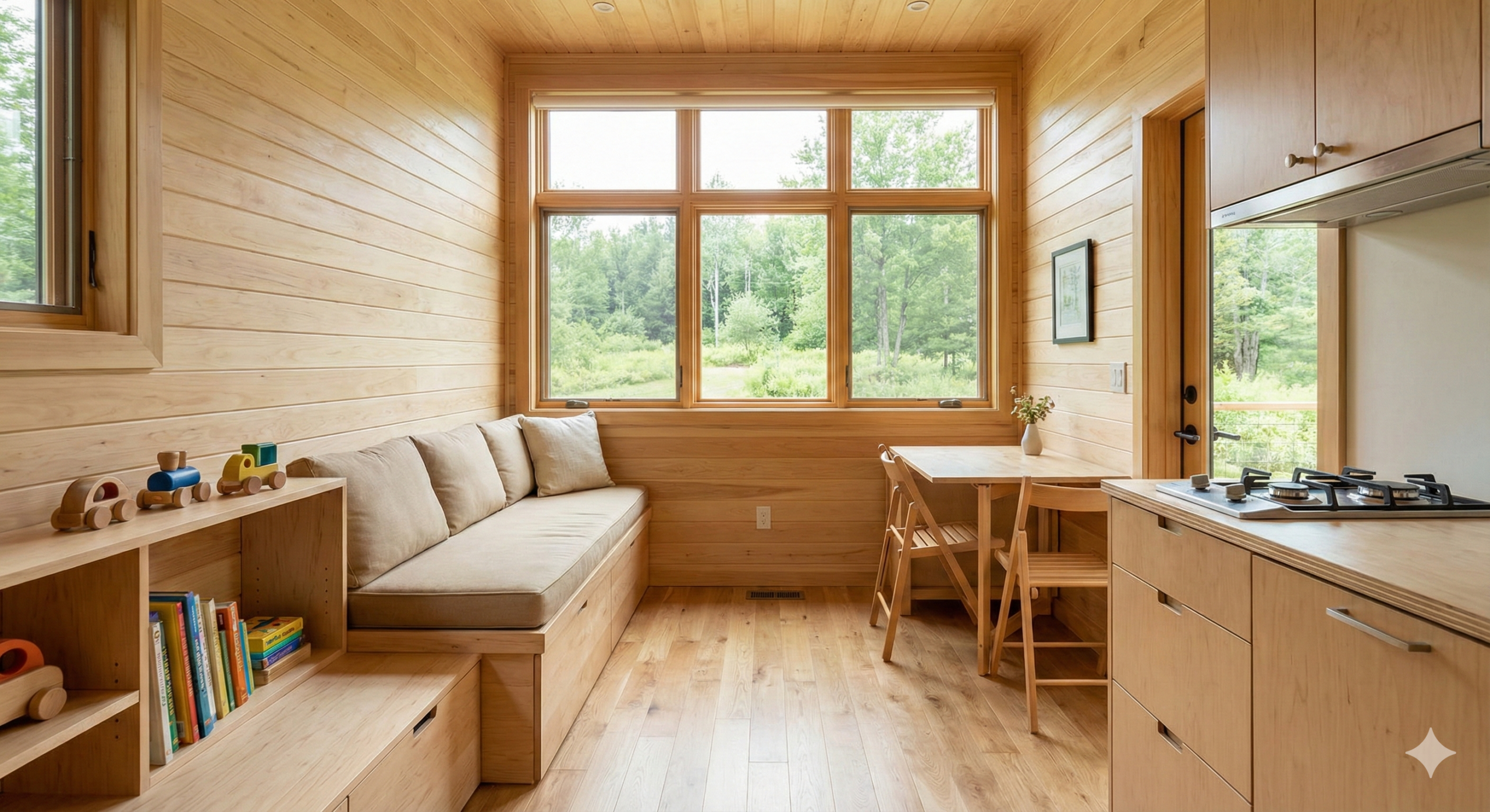La Tiny House Familiale Compacte propose une approche rationnelle de l’habitat compact pour les foyers souhaitant disposer de plusieurs espaces distincts dans une surface contenue. Son agencement intérieur privilégie la séparation des fonctions tout en conservant une circulation fluide et naturelle. Ce projet s’inscrit dans une logique d’habitat durable, accessible et facile à implanter sur différents types de terrains.